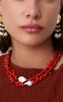 "Un bijou au charme organique, composé de pierres naturelles aux formes brutes qui évoquent la force et la pureté de la nature. En son centre, une perle d’eau douce plate vient adoucir l’ensemble, comme une parenthèse de délicatesse. Le collier Layla se porte comme un talisman unique, entre authenticité et raffinement."