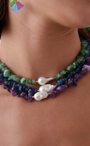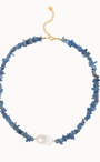 "Un bijou au charme organique, composé de pierres naturelles aux formes brutes qui évoquent la force et la pureté de la nature. En son centre, une perle d’eau douce en forme de goutte vient adoucir l’ensemble, comme une parenthèse de délicatesse. Le collier Nelia se porte comme un talisman unique, entre authenticité et raffinement."
